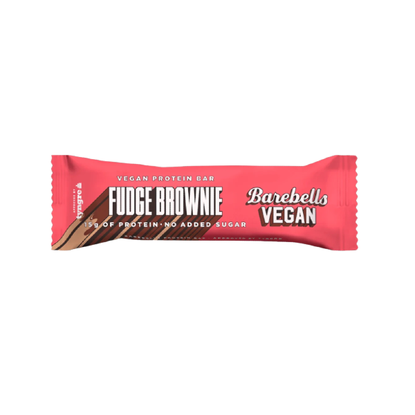Barebells Vegan Fudge Brownie Protein Bar, 15 grams of protein, no added sugar. Vegan protein bar with cocoa coating (24%), chocolate drops (5.5%) and fudge brownie flavour. Contains sweeteners and naturally occurring sugars. Excessive consumption may have laxative effects. Without palm oil. Store at room temperature. Recyclable as plastic packaging. For best before date, see packaging.
