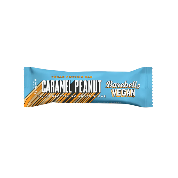 Barebells Vegan Caramel Peanut Protein Bar, 15 grams of protein, no added sugar. Vegan protein bar with peanuts, caramel flavour and cocoa coating (26%). Contains sweeteners and naturally occurring sugars. Excessive consumption may have laxative effects. Without palm oil. Store at room temperature. Recyclable as plastic packaging. For best before date, see packaging.
